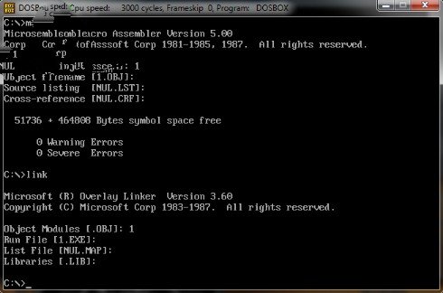 9.之后就可以运行MASM, LINK了.,见下图所示: