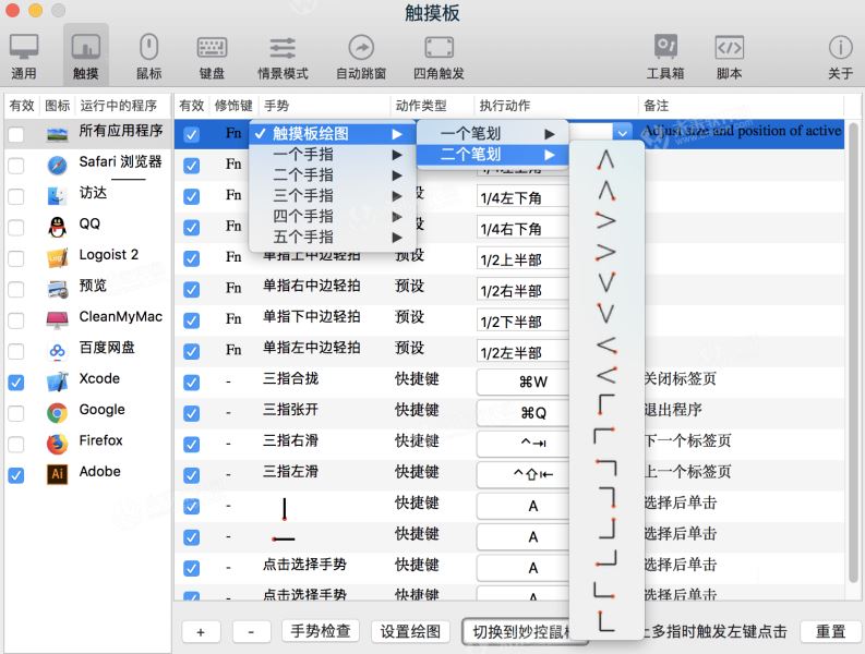 通过在触摸板上单指、多指、点按、绘图等多个手势操作,代替点按图标,成倍提升你的工作效率,每一个手势都是那么的帅。
