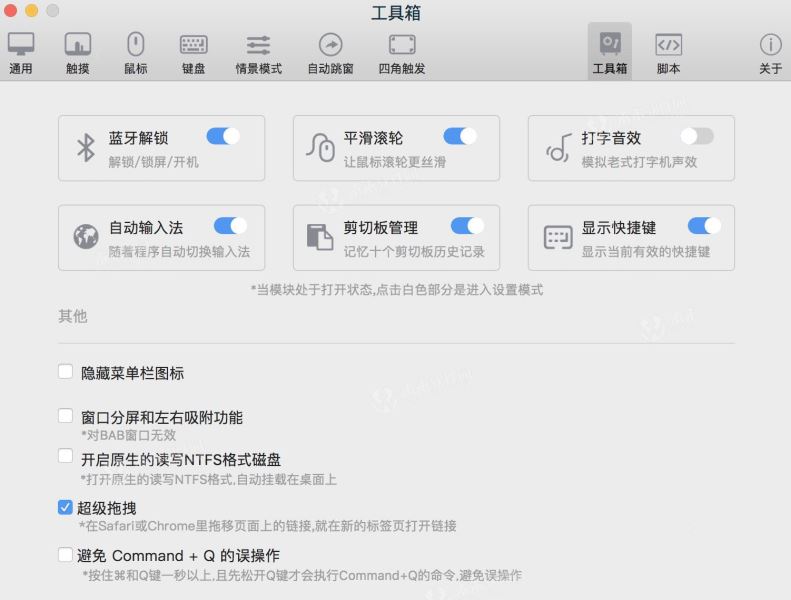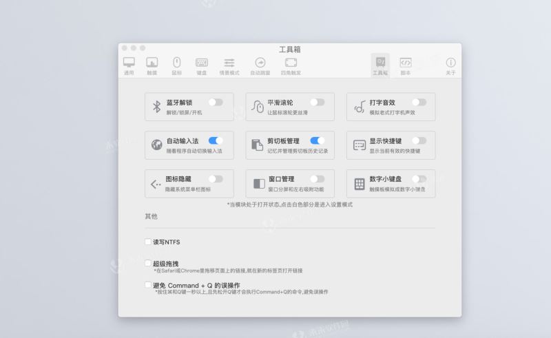 蓝牙解锁/平滑滚轮/打字机音效/自动输入法/剪切板管理/显示快捷键
