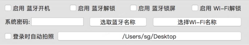 首先,在系统秘密栏输入你的密码,此时便打开了第一个功能,自动输入密码,当系统弹出任何需要输入密码的弹窗时,它便会自动输入。第二步,点击中间的框,选择蓝牙设备,便能打开上面的一排开关,分别是:- 「蓝牙开机」开机时检测所选蓝牙设备,若找到则自动输入密码。- 「蓝牙解锁」从睡眠唤醒时,检测所选蓝牙设备,若找到则自动输入密码。- 「蓝牙锁屏」随时检测所选蓝牙设备,若设备消失则自动锁定,若蓝牙又出现则自动解锁。- 「Wifi解锁」从睡眠唤醒时,检测所选wifi,若找到则自动输入密码。