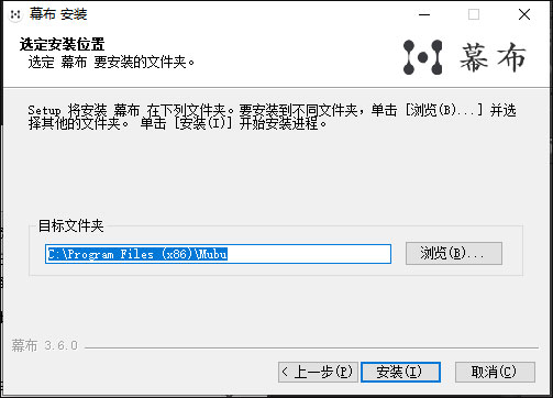 3、将软件安装所需要放入的默认位置。初始安装位置为:【C:\Program Files (x86)\Mubu】,点击安装即可。