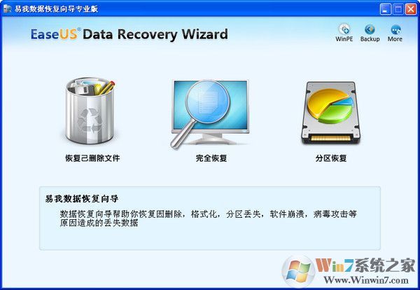 易我数据恢复向导是一款老牌的数据恢复软件,针对误删除、格式化、分区损坏等情况下的文件恢复有很高的恢复几率。