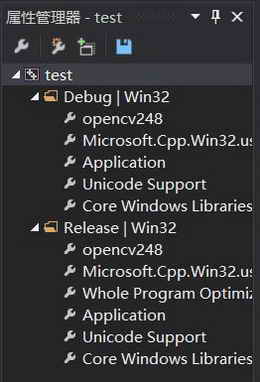 这里用VS属性表的方式将Opencv配进工程,每次只需要添加属性表即可完成配置,比手工界面配置方便很多。