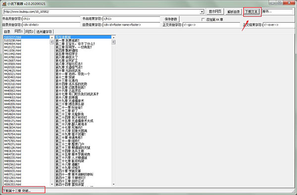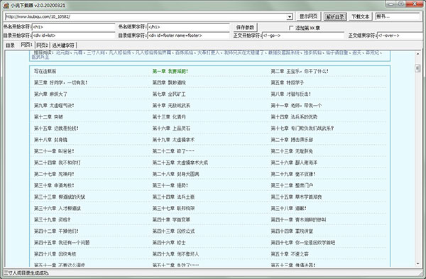 7、然后打开要下载书的目录页面,点击“解析目录“,选择要下载的章节;