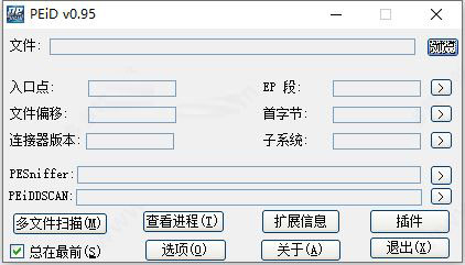2、双击“PEID V0.95.EXE”即可直接运行启动,绿色版无需安装,如图: