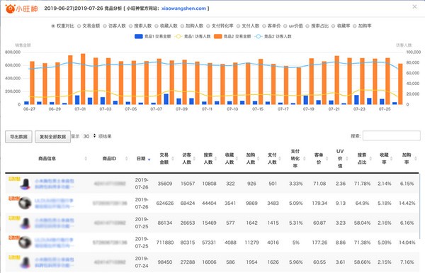查看随意商品的今日付款总数;可随时查询竞争者的市场销售状况