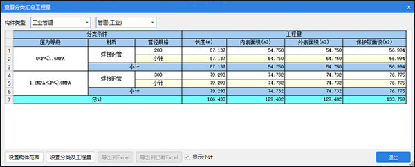 ②属性中新增了工业管道的出量分类,通过设置不同的压力等级以及传输介质进行划分出量
