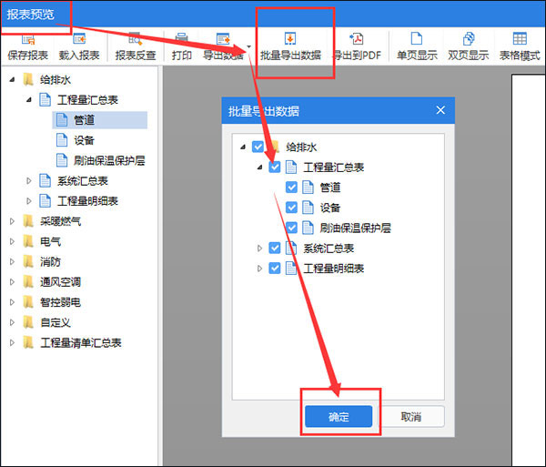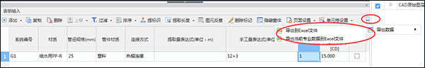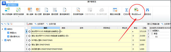 套做法界面:在集中套做法界面在每个专业报表下都有导出到excel;
