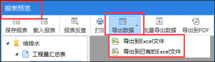 报表预览界面:点击报表预览界面---导出数据--导出到excel文件/导出到已有的excel文件。