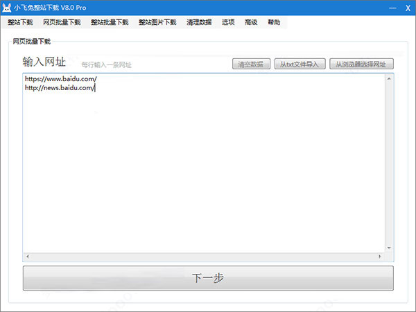 1、输入要批量下载的网址。