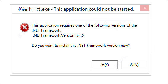 2、安装运行环境.Net4.6以上版本,如果运行软件报如下图错误,需要安装环境:Microsoft .NET Framework 4.6。