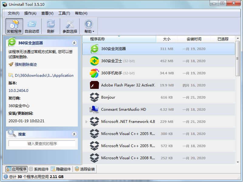 *便于应用并再加上应用当代操作界面,让您应用UninstallTool更为舒服.