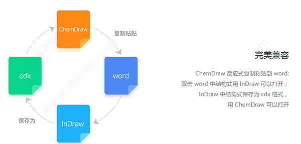ChemDraw 反应式复制粘贴到 word,双击 word 中结构式用 InDraw 可以打开,InDraw 中结构式保存为 cdx 格式,用 ChemDraw 可以打开。