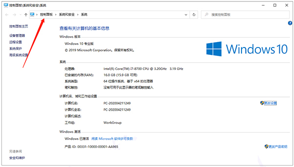 1、打开我的电脑,选择控制面板选型。
