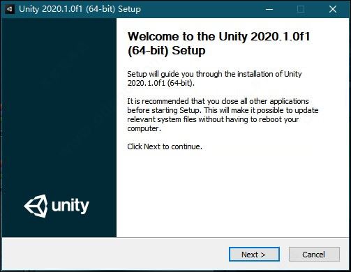 5、然后在安装主程序UnitySetup64-2020.1.0f1.exe;