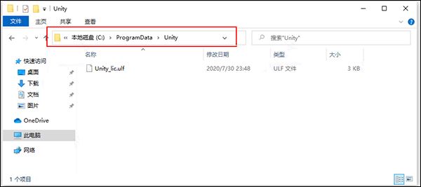 11、复制Unity_lic.ulf文件到C:\ProgramData\Unity下;