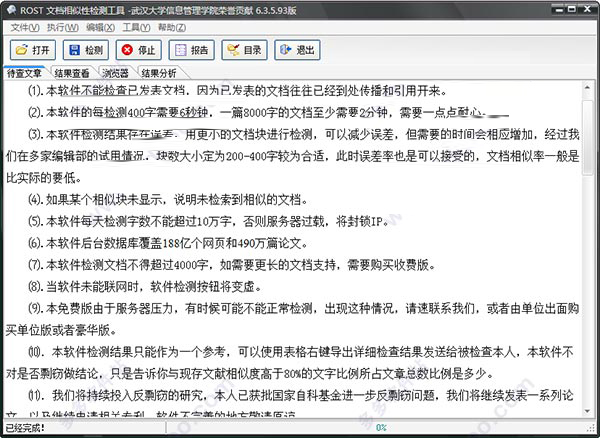 2、本软件的每检测400字需要6秒钟,一篇8000字的文档至少需要2分钟,需要一点点耐心。