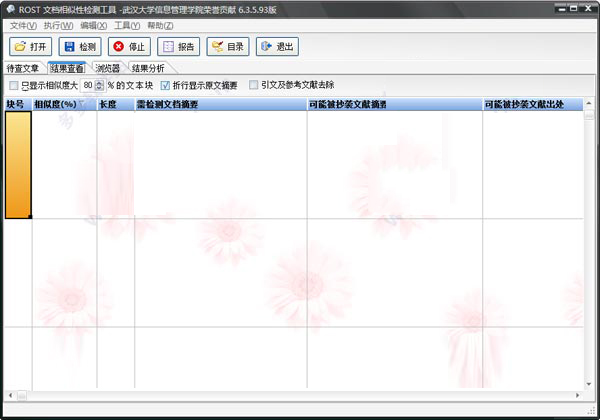 10、本软件检测结果只能作为一个参考,可以使用表格右键导出详细检查结果发送给被检查本人,本软件不对是否剽窃做结论,只是告诉你与现存文献相似度高于80%的文字比例所占文章总数比例是多少。