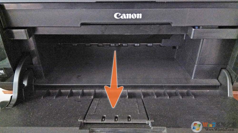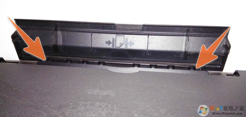 1、这款打印机的进纸口还是很普通的,在打印机上方的前边处,是一个长方形的盖板,把它揭开,纸张放在正中间即可,左右还有两个滑块,可根据纸大小,进行调节。
