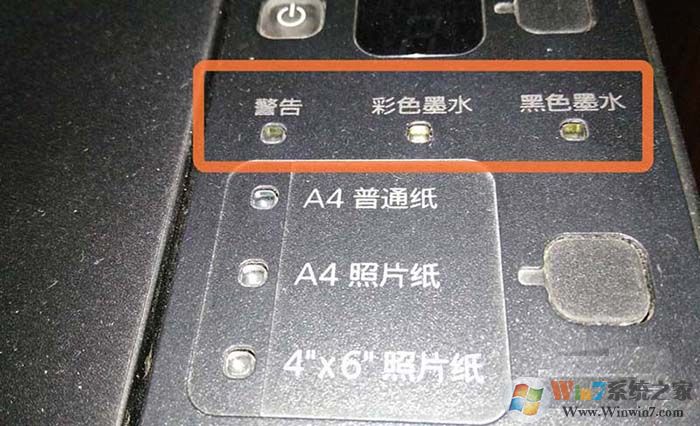 5、在电源键下方就是打印机的墨水提示灯,当灯变成橙色,并一直闪烁时,那就说明该墨盒里的墨水不足了。