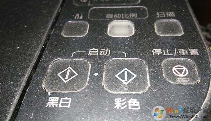 6、另外,在操作面板的最下方,标着黑白或彩色的按键,就是用来进行黑白或彩色复印时选择的,如中途要停止时,就按下旁边那个停止键。如要关闭打印机的话,还是需要再按下电源键的,停止打印并不能把打印机关机。