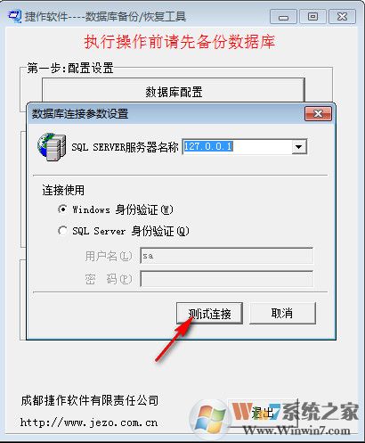 1、配置数据库,数据库服务器名称,用户名和密码,然后测试连接,看是否成功。