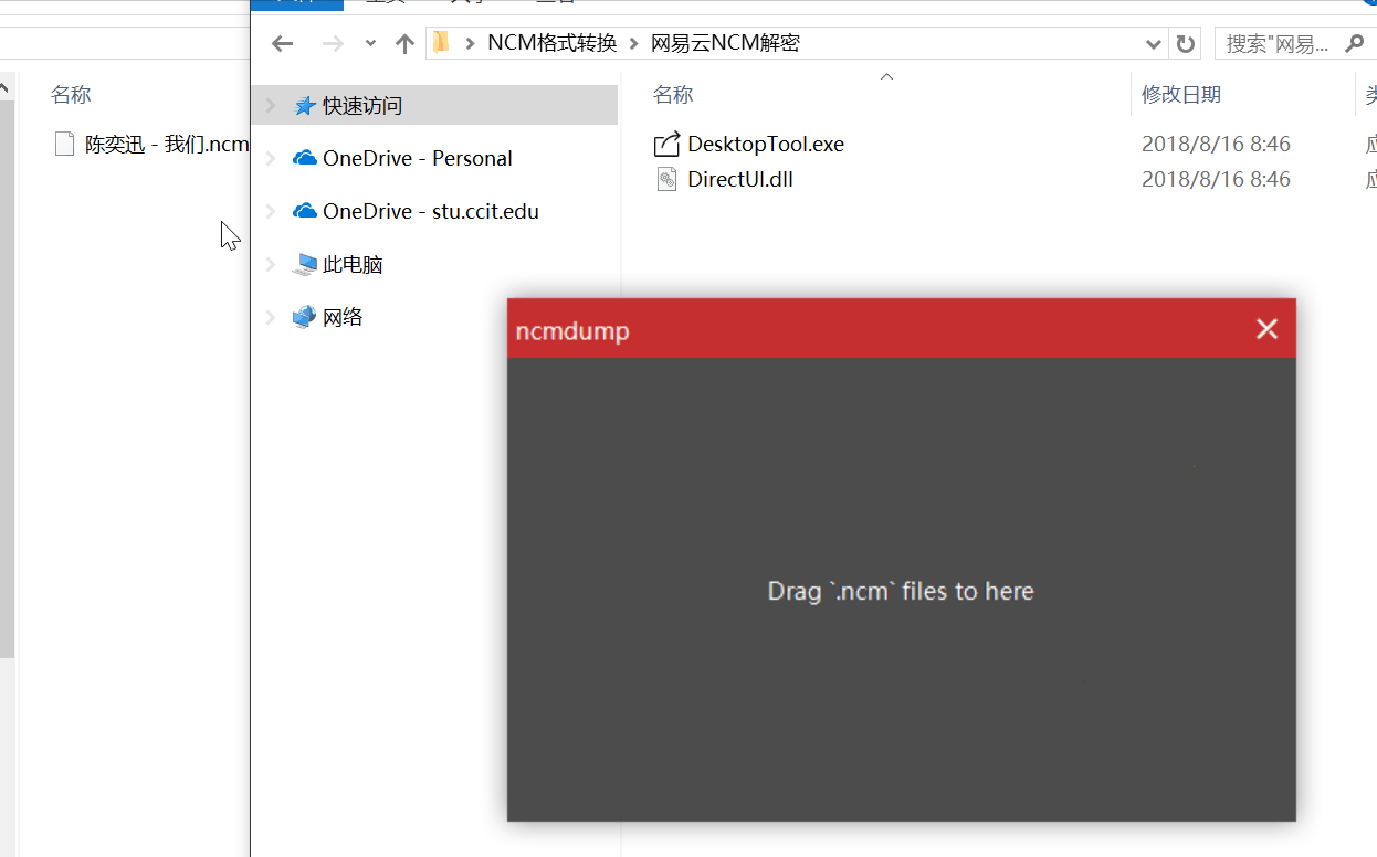 ncmdump(网易云ncm格式批量转换)是一款简单的网易云NCM格式转MP3格式软件,支持批量转换网易云下载的NCM格式文件为MP3格式,使用起来也非常简单,只需要拖动NCM格式的音乐文件到软件中即可生成MP3文件,有需要的可以下载使用。