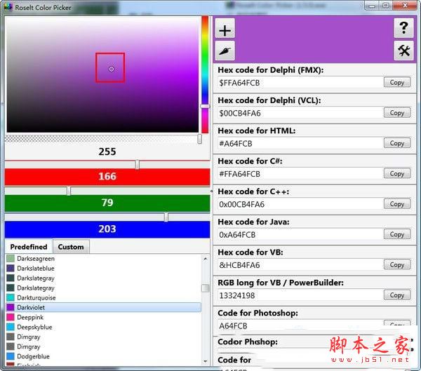Roselt Color Picker是一款非常强大的颜色提取器,简单易用,只有一个颜色设置拾取功能,可以将自己常用的颜色保存方便下次使用,支持获取颜色的各种信息,支持屏幕取色,一些编程软件的常用颜色可以直接使用,可以将自己常用的颜色保存方便下次使用,非常的方便,有需要朋友不要错过了哦。