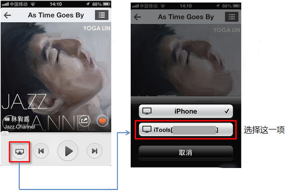 1、如果您只需要将手机上的音乐透过电脑进行播放,那么只需选择电脑名称,而不需要点击镜像即可。见winwin7分享的图片: