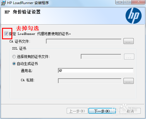 8.耐心等待程序安装。弹出如下界面时,若无指定代理使用的证书,则去掉勾选,点击【下一步】,见下图所示: