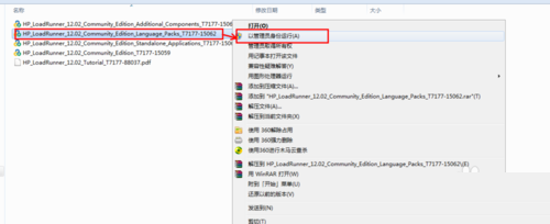 10.是不是英文界面用起来不是很方面。那么接下来我们将安装Loadrunner中文包。右键点击“HP_LoadRunner_12.02_Community_Edition_Language_Packs_T7177-15062.exe”安装包,选择【以管理员身份运行】,见下图所示: