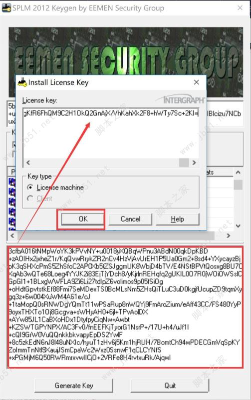 14.将注册机生成的激活码,复制到License key项中,点击OK,见下图所示: