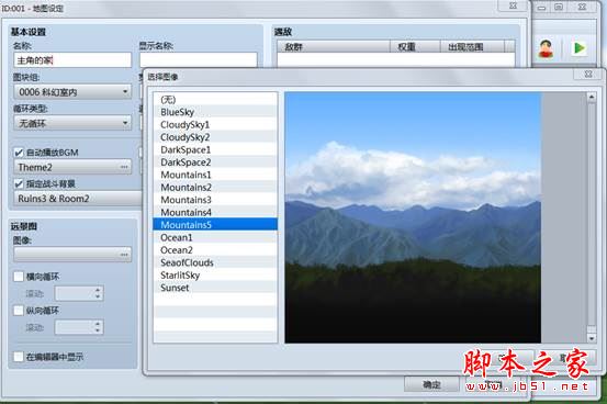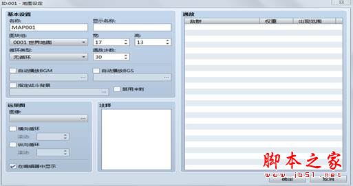 按“。。。”选择图像。横向纵向循环:指定速度自动滚动。注释:对该地图进行说明。可自由添加注释的文字区域。 遇敌:随机遭遇的敌群列表。