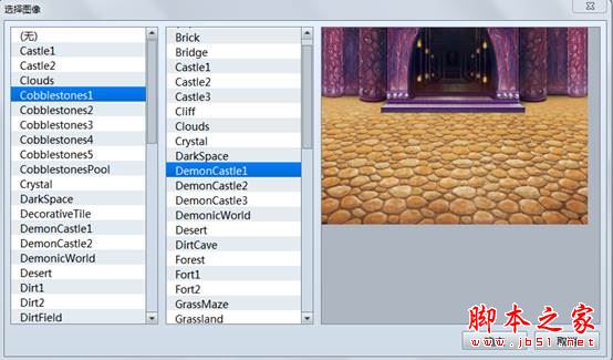 选择图像: 左边列表框选择地面背景图,右边列表框选择远景背景图。按确定按钮保存设置。