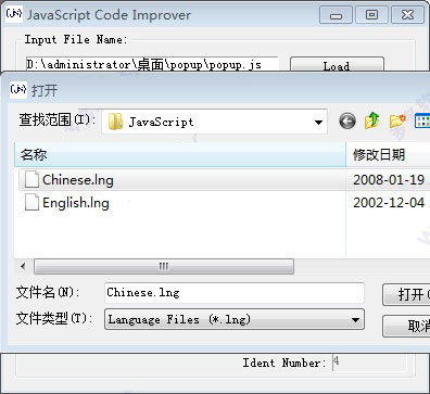 1、软件下载解压完成后,点击jsci.exe打开软件,选择language选择chinese,点击确定。