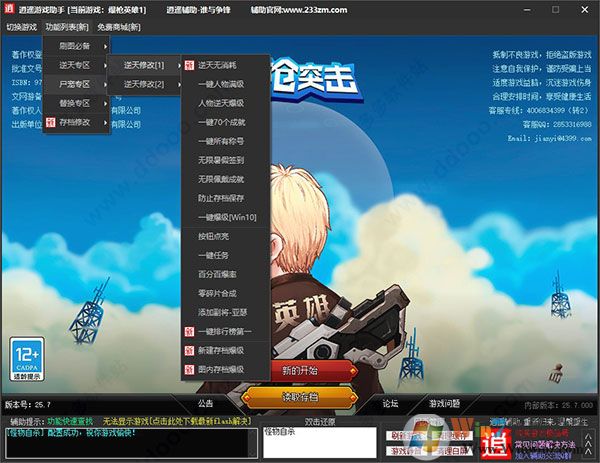 双击运行"逍遥修改器.exe"打开,选择好所需要修改的游戏,这里以爆枪英雄1为例子: