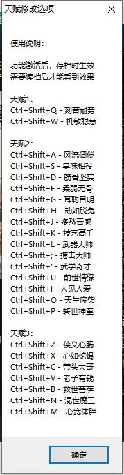 11. 天赋修改在激活后,存档再读档才能看到效果。