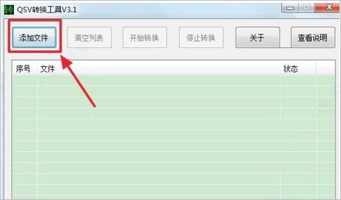2、进入软件之后,点击添加文件,开始添加QSV格式文件;