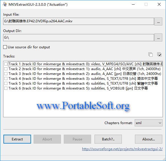 MKVToolNix 中的 MKVExtractGUI 则可以从现有的 MKV 文件中提取其中的一个或多个视频、音频或者字幕信息,是专业的 MKV 分离工具。