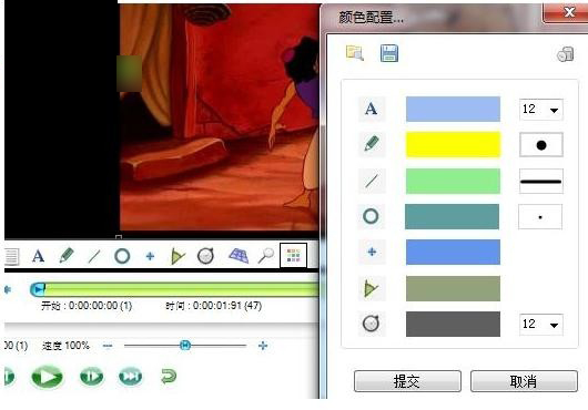 4.工具栏颜色配置,如图所示,可调节各种工具的颜色和样式。