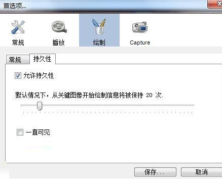 5.这里着重要介绍的是画笔工具,因为动画师太经常用到它了!在视频上绘制,播放器会自动记录一张关键图像,我们可以在菜单栏【选项】—【首选项】中选择关键图像持续的时间。勾选【一直可见】,则所绘制的图像会一直持续,如图所示:
