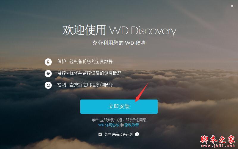 1、在本站点下载软件安装压缩包,解压并运行Install WD Discovery.exe,进入安装向导,点击立即安装