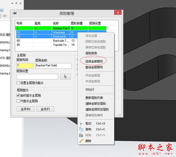 层别管理器(Level Manager)中一键选择多个层别中所有图素: