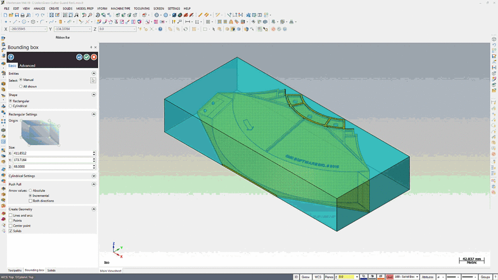 Mastercam X9中的边界盒采用了更前卫的外观。从现在开始,可以实现对边界盒直接进行推拉。