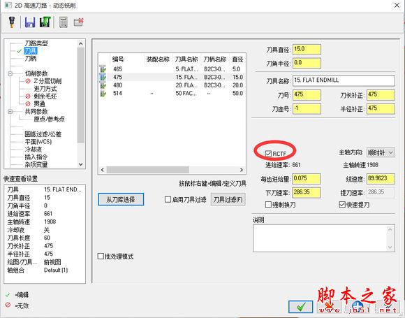 X9 在2D和3D铣削刀路中开始加入RCT技术(径向减薄技术),可在保持切屑厚度恒定的情况下,进一步提高加工的速度和效率。选择“RCTF”(Radical Chip Thinning Function)即可在刀路中开启径向减薄功能。