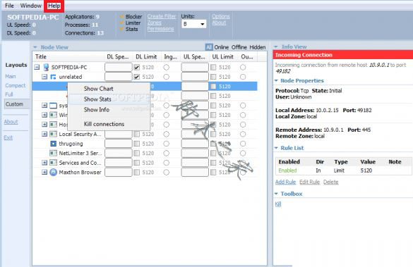 标准编辑器–用以自定NetLimiter行为的高端工具;