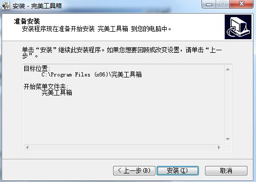 7、点击安装,安装程序现在准备开始安装完美具箱到您的电脑中。