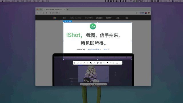 iShot是一款苹果电脑MAC上非常不错的免费截图工具,它除了截图还支持标注,区域截图、窗口截图、长截图、延时截图、快速标注都是它的拿手功能,可以说应该是MAC上最好用的截图软件之一!