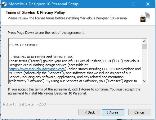 MarvelousDesigner10_Personal_6_0_351_Installer_x64.exe开始安装,点击i agree同意条款