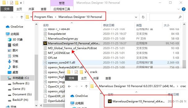 将crack补丁复制到软件安装路径下替换,默认路径:C:\Program Files\Marvelous Designer 10 Personal